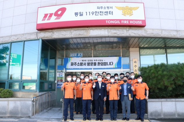 파주소방서(서장 정찬영)는 7일 김경일 파주시장이 소방서를 방문하여 추석을 대비하는 직원들의 노고를 격려하고 당면 추진업무를 공유하는 시간을 마련했다고 밝혔다.
