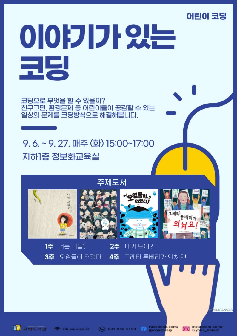 파주교하도서관, 이야기가 있는 코딩 프로그램 진행 - 독서와 소프트웨어 융합 프로그램