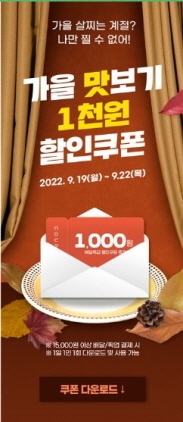 경기도주식회사는 19일 월요일부터 오는 22일 목요일까지 나흘간 배달특급 전체 회원을 대상으로 ‘가을 맛보기 할인’ 이벤트를 진행한다고 밝혔다.