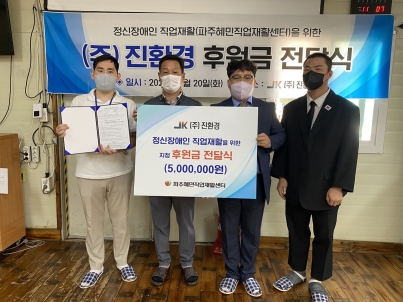 ㈜진환경, 파주혜민직업재활센터에 후원금 5백만원 전달 정신장애인 직업재활 분야에 후원