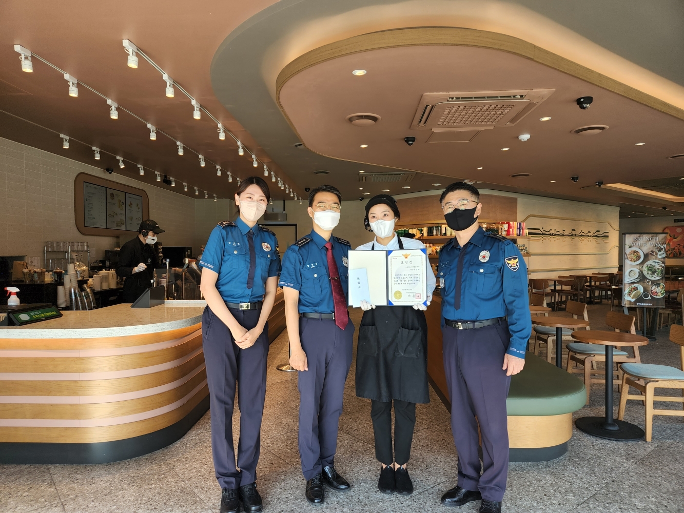 파주경찰서는 경기북부 파주경찰서(서장 이재성)은 전화금융사기(보이스피싱) 범인 검거에 기여한 커피전문점 점장과 피해를 예방한 은행 직원에게 표창 및 감사장과 포상금을 23일 전달했다.