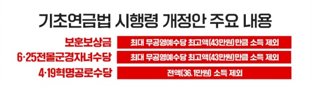 「기초연금법 시행령」이 개정돼 8월 1일부터 시행됨에 따라, 기초연금 수급 자격을 결정하는 소득인정액에서 국가유공자·독립유공자·보훈보상대상자의 보상금 중 최대 43만원을 비롯해 일부 수당이 제외된다.