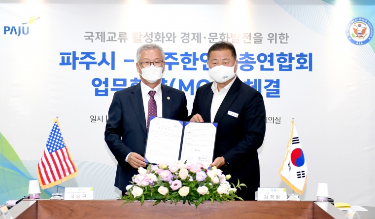 파주시(시장 김경일)는 4일 시청 영상회의실에서 미주한인회총연합회(이하, 미주총연)와 국제교류 활성화와 경제·문화발전을 위한 업무협약을 체결했다.