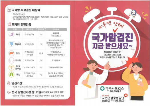 자세한 사항은 파주시보건소 진료검사팀(☎031-940-5581~2)으로 문의하면 된다.