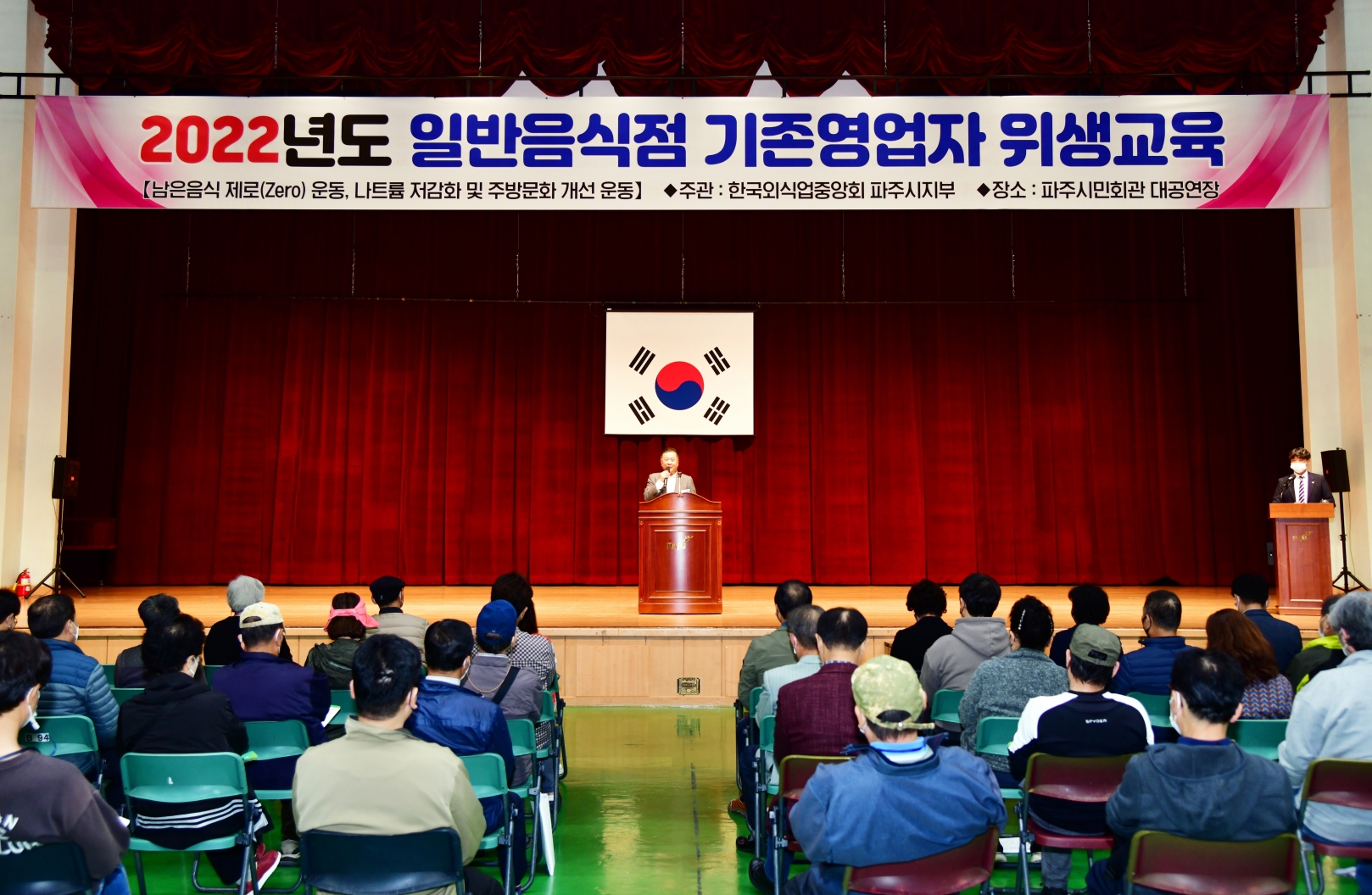 기존영업자 식품위생교육은 (사)한국외식업중앙회 경기도지회 파주시지부(지부장 정명숙)의 주관으로 개최되며, 회차별로 일반음식점의 기존영업자 약 1,000여 명을 대상으로 진행된다.