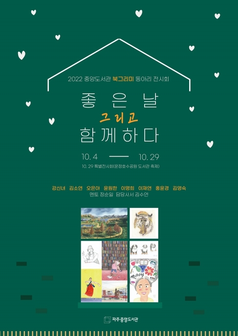 10월은 그림동아리 <북그리미>가 ‘좋은날 그리고 함께하다’라는 주제로 전시가 진행된다. 2016년도에 시작한 그림동아리인 <북그리미>는 그림 관련 도서를 읽고 그림을 그리는 동아리로, 장순일 멘토와 함께 11명이 활동하고 있다.