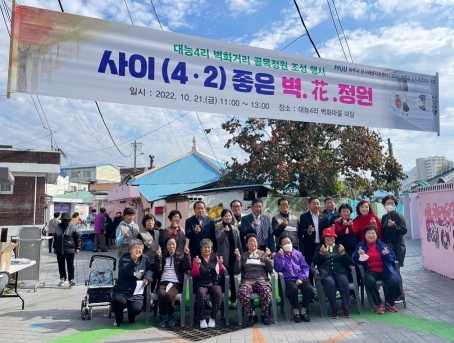 ‘사이(4·2)좋은 벽화(花)정원’은 대능4리와 대능2리 일원에 골목 정원을 조성하는 사업으로, 2022년 법원읍 도시재생 예비사업인 ‘사이(4·2) 좋은 이웃 사임당마을 으라차차’의 골목재생사업이다.