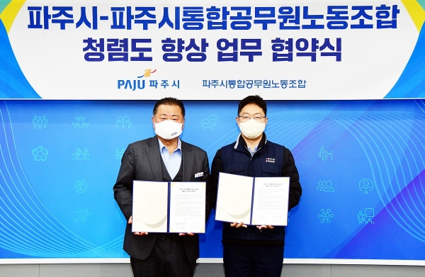 파주시와 파주시통합공무원노동조합은 27일 파주시 조직의 청렴도 향상을 위한 업무 협약을 체결했다.
