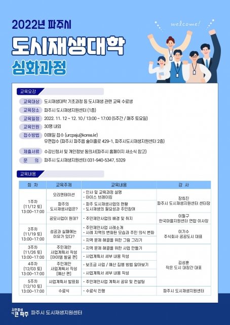 파주시, 2022년 도시재생대학 심화과정 수강생 모집 - 도시재생대학 심화과정 12일부터 5주간 진행