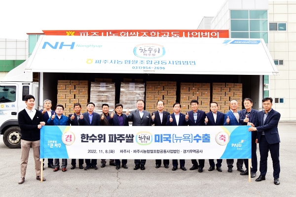 파주시 관내 농가에서 생산된 ‘한수위 파주쌀’이 미국 뉴욕 수출길에 올랐다.
