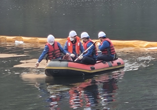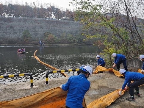 대규모 수질오염사고라는 재난 상황을 부여해 ▲현장 상황 전파 및 보고 ▲오일 유출 설비 정지 조치 및 수계 유입 차단(초동방재 단계) ▲오일펜스 설치 및 유류 흡착 제거(현장출동 및 사고 대응 단계) ▲오염 확산 여부 조사 및 시료 채취(후속조치 단계) ▲방재작업 완료 상황 보고를 끝으로 마무리됐다.