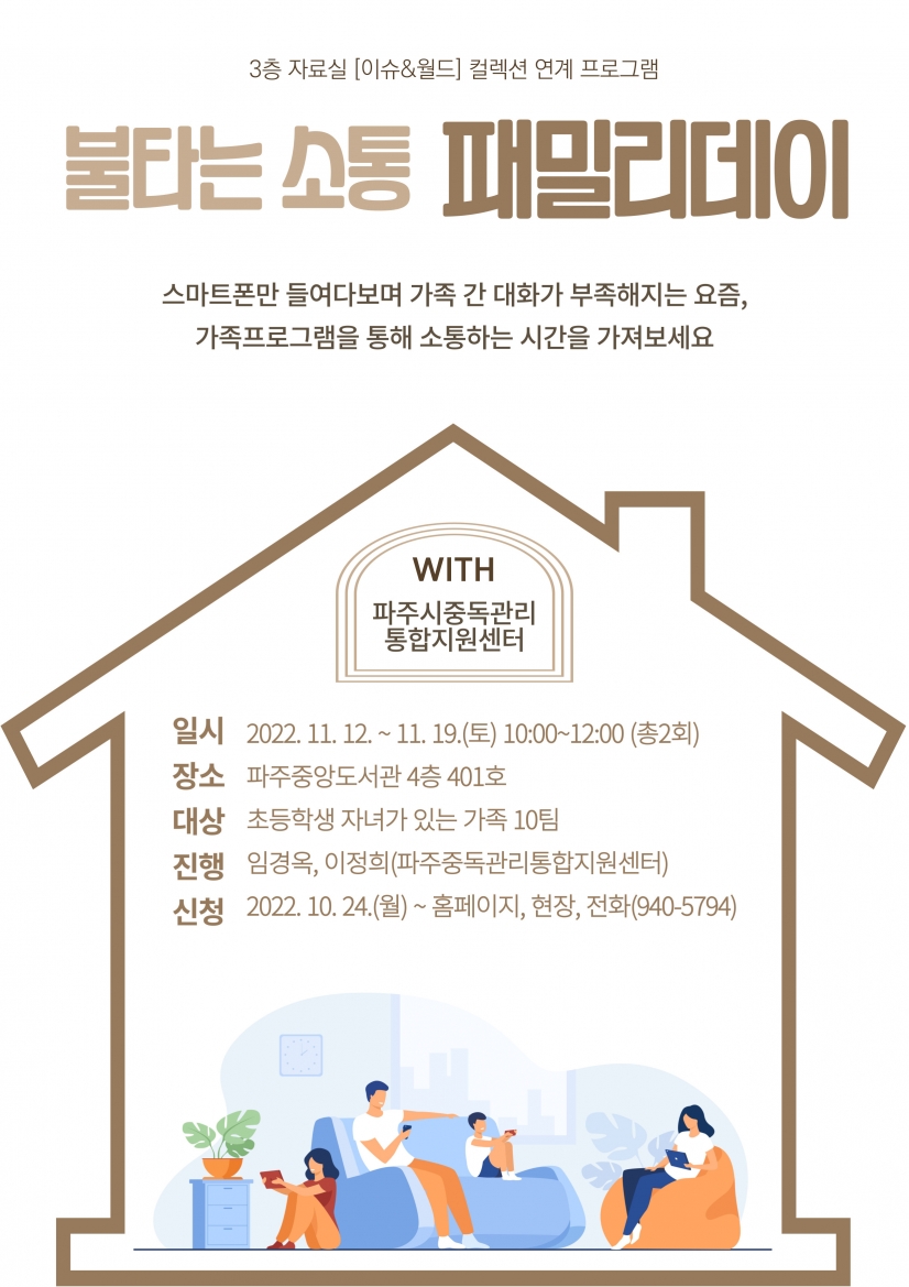 파주중앙도서관(관장 권예자)은 오는 12일부터 19일까지 ‘불타는 소통 패밀리데이’를 운영한다.