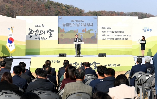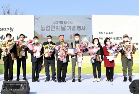 파주시(시장 김경일)는 11일 파주장단콩웰빙마루 잔디마당에서 ‘제27회 파주시 농업인의 날’ 기념행사를 개최했다.