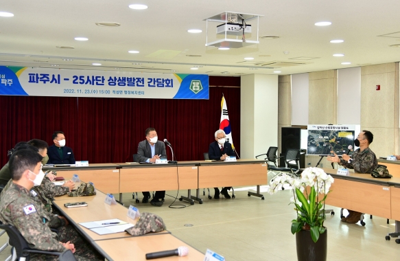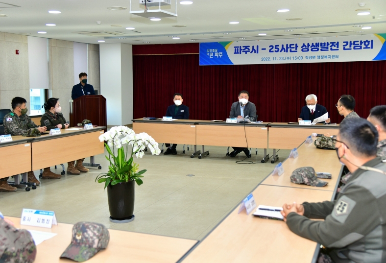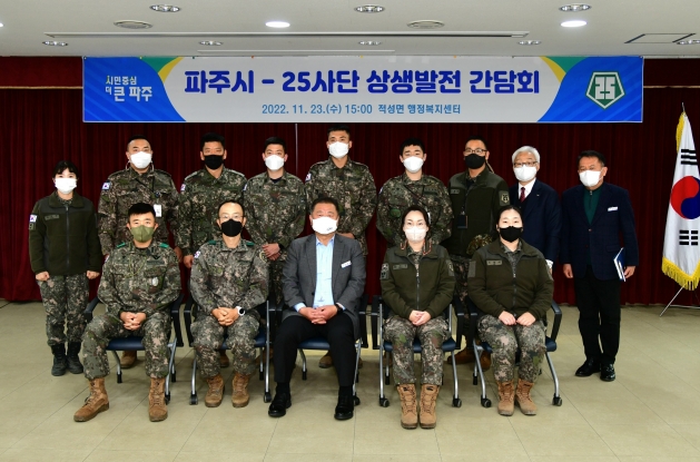 파주시(시장 김경일)는 23일 적성면행정복지센터에서 25보병사단(25사단)과 ‘군관 상생발전 간담회’를 개최했다고 밝혔다.