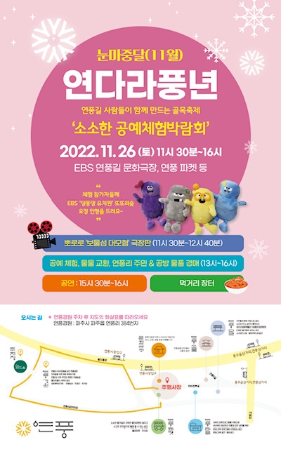 - EBS연풍길서 플리마켓, 공예물품경매, 영화상영 등 프로그램 진행