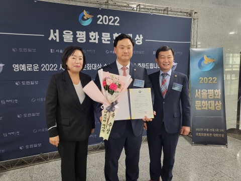 경기도의회 건설교통위원회 고준호 도의원(국민의힘, 파주1)은 25일(금) 국회의원회관에서 서울평화문화대상위원회가 주최하고 서울일보·도민일보·서울매일·시사통신이 주관하는 2022년 서울평화문화대상 시상식에서 ‘지역소통광역의정대상’을 수상하는 영예를 안았다.
