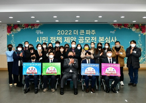 파주시(시장 김경일)는 시정에 대한 관심을 유도하고, 정책 아이디어를 발굴하기 위해 ‘2022 더 큰 파주 시민 정책 제안 공모전’을 실시하고 15일 본심사를 개최했다.
