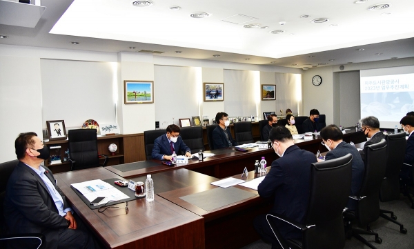 이날 보고회에는 김경일 파주시장을 비롯해 재정경제국장, 도시발전국장 등 시 대행사업 국장들과, 정학조 파주도시관광공사 사장, 경영관리본부장, 도시관광개발본부장 등 공사 임원 전원이 참석했다.