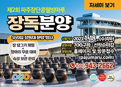 파주시 출자기관인 ㈜파주장단콩웰빙마루(이하, 웰빙마루)에서는 제2회 장독분양 신청자를 선착순으로 모집한다.