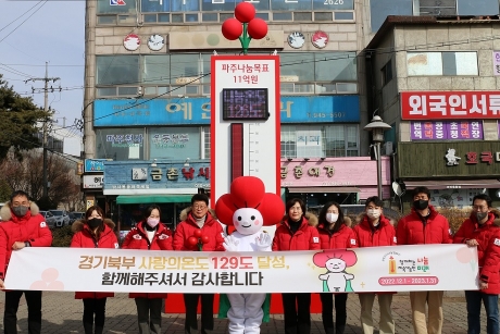 파주시, 사랑의 온도탑 126도 초과 달성...13억8,000만원 모금