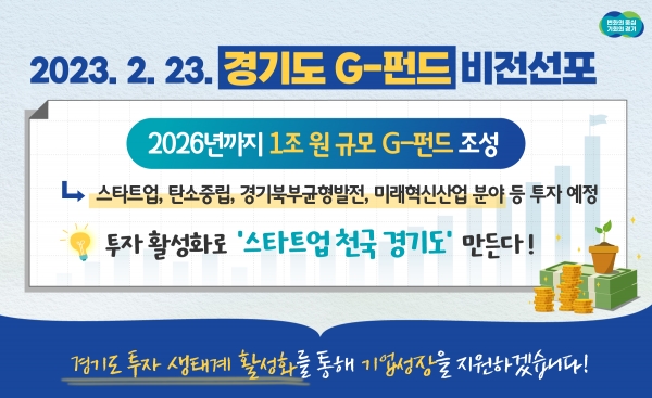 경기도가 ‘스타트업 천국 경기도’를 만들기 위해 2026년까지 1조 원 규모의 경기도 G-펀드를 조성한다. 김동연 경기도지사의 임기 내 100조 원 투자유치 선언에 이은 G-펀드 비전 선포는 ‘투자유치’와 ‘투자제공’이라는 경기도 경제성장의 양 날개가 될 전망이다.