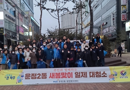 한경준 운정2동장은 “바쁜 일정에도 청결 활동에 자발적으로 참여해 준 여러 단체 회원들께 깊은 감사를 전한다”며 “지난 설맞이를 시작으로 올 한 해 새봄맞이, 휴가철, 추석맞이 등 시기별 환경 정화를 지속적으로 추진해 사계절 깨끗하고 쾌적한 명품 도시 운정2동을 조성하겠다”고 말했다.