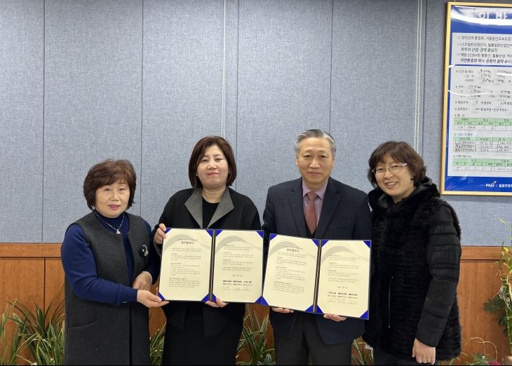 협약식은 김은숙 월롱면장, 박경분 월롱다온공도체 위원(월롱면 새마을 부녀회장)과 김면식 밀알 대표이사가 참석했다.
