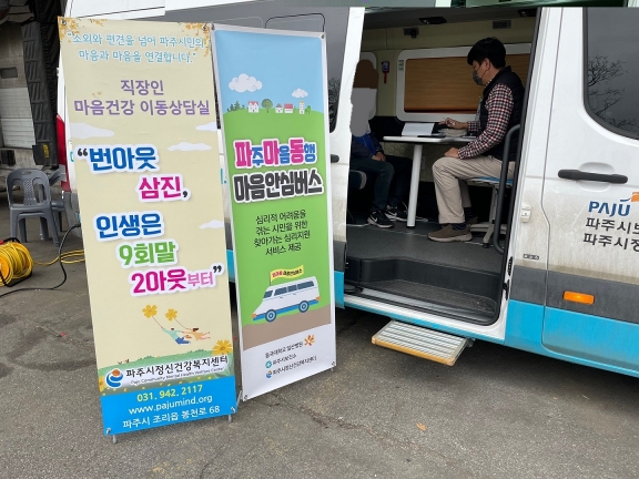’파마동 마음안심버스‘는 정신건강 상담이 필요한 시민을 대상으로 지역을 방문해 다양한 심리지원 서비스를 지원하는 사업으로, 파주시가 2021년 보건복지부 공모에 선정됨에 따라 국비 1억 5천만원을 확보해 운영해왔다.