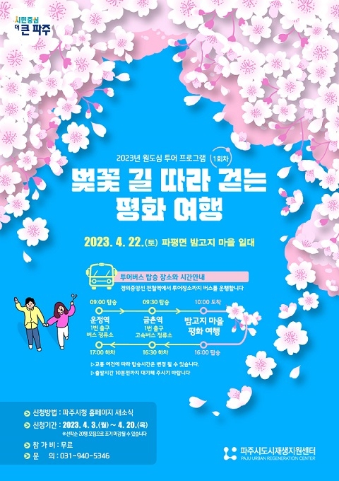 참가 비용은 무료로, 신청은 파주시 홈페이지 새소식 공고를 확인해 이메일로 접수하면 된다. 참가자는 회차별로 선착순으로 모집하며, 투어 당일에는 경의선 운정역과 금촌역에서 셔틀버스가 정차한다.