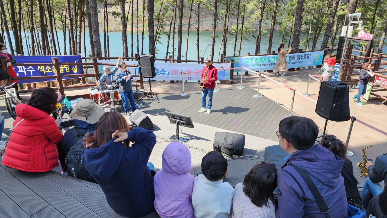 파주도시관광공사(사장 최승원)는 벚꽃이 만개하는 따뜻한 봄을 시민들과 함께하고자 감악산과 마장호수에서 봄맞이 재능기부 버스킹(거리공연)을 실시하였다.