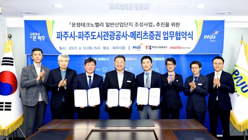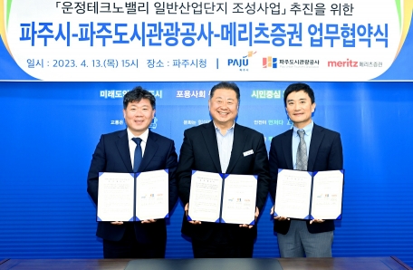 파주시는 13일, 파주도시관광공사와 메리츠증권 컨소시엄과 ‘(가칭)운정테크노밸리 일반산업단지 조성사업’ 추진을 위한 업무협약을 체결했다.