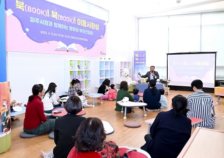 ‘북(BOOK)!북(book)! 이동시장실’은 영유아 및 부모, 시민 등 40여 명이 참석한 가운데 편안하고 자유로운 분위기 속에서 진행됐다. 특히, 김 시장은 어린이가 함께 참여한 만큼 그림책을 직접 읽어주는 시간을 가지며 아이들과 소통했다.