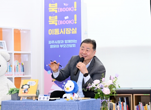 김경일 파주시장이 12일 ‘제1회 도서관의 날’을 맞아 교하도서관에서 화목한 이동시장실을 열고 영유아 부모 및 시민들과 만남을 가졌다.