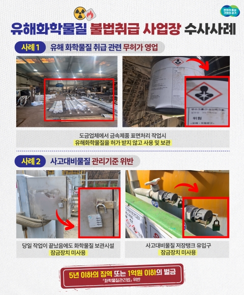 경기도 특사경, 유해화학물질 불법 취급 사업장 102곳 적발