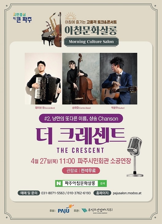 파주시, 아침에 즐기는‘아침문화살롱’4월 공연 개최