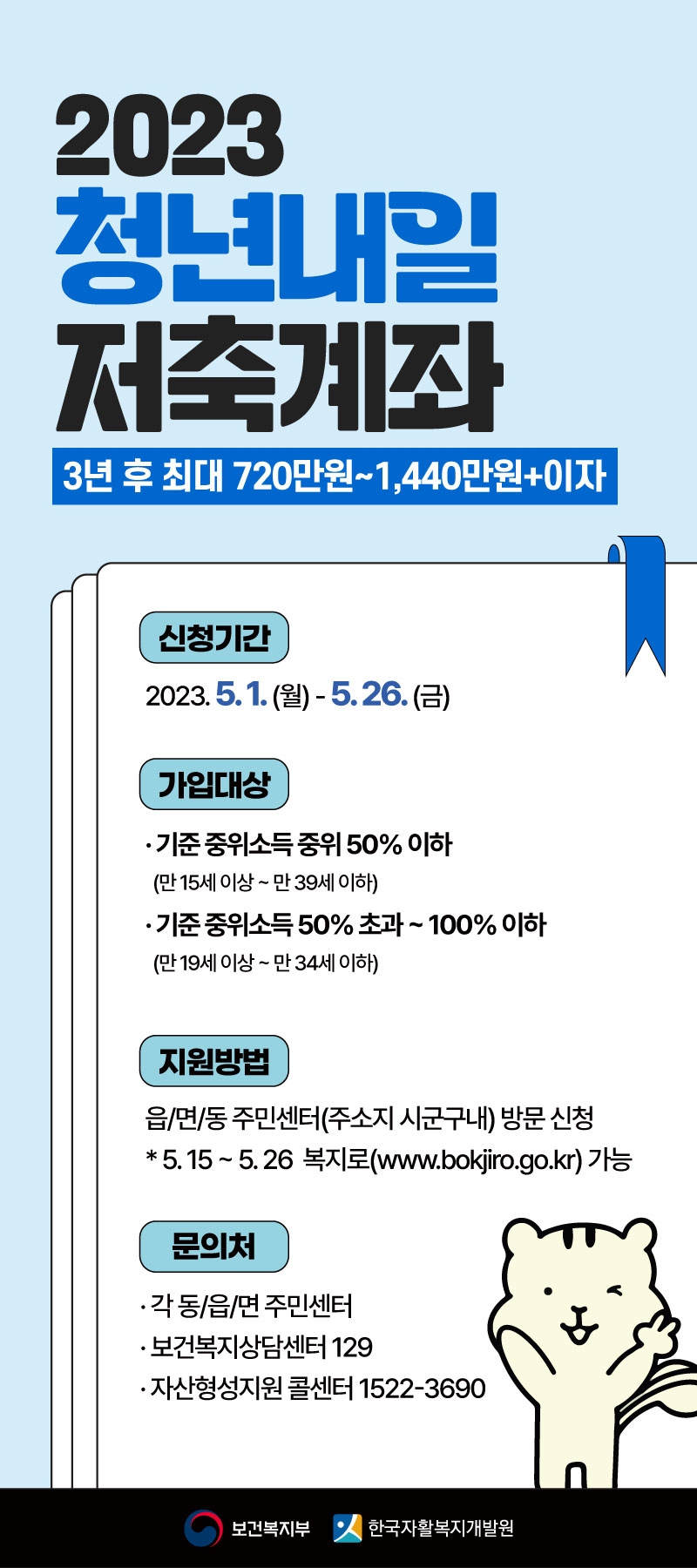 - 5월 1일부터 접수, 일하는 저소득 청년 자산형성지원