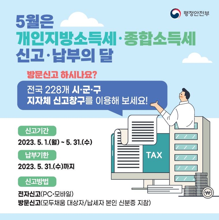 신고 대상은 2022년에 종합소득이 있는 개인으로, 5월 31일까지 종합소득세와 개인지방소득세를 신고·납부해야 한다.