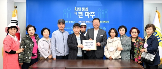 파주읍 동광모닝스카이 아파트 주민 10여 명이 지난달 27일 파주시청을 방문해 성매매집결지(이하 집결지) 폐쇄를 위한 100여 명의 지지 서명부를 전달하고 집결지의 조속한 폐쇄를 촉구했다.
