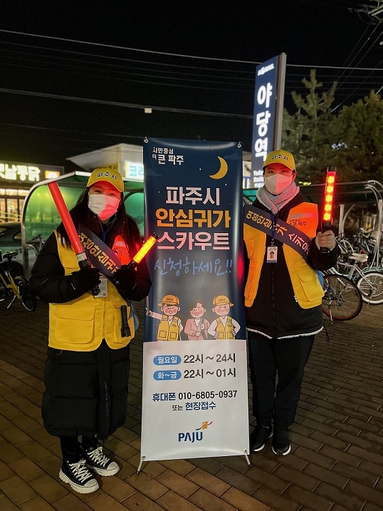 파주시는 2023년 2월부터 늦은 밤 귀가하는 여성과 청소년들의 안전을 위해 야당역 인근에서 ‘여성안심귀가 스카우트’ 사업을 시행하고 있다.