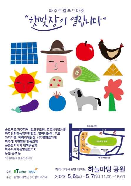 파주 로컬푸드마켓 ‘햇빛장’이 5월 6~7일 파주 탄현면 헤이리 예술마을 하늘마당공원에서 열린다.