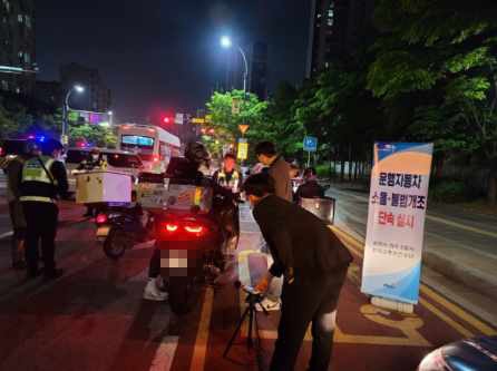 이번 단속은 이륜차 소음 및 법규위반 민원이 잦은 곳을 선정하여, 불법튜닝으로 인한 소음유발 행위, 번호판 미부착 운행·번호판 훼손‧가림 등 자동차관리법 위반, 고위험·고비난 도로교통법 위반 행위 단속을 실시하여,