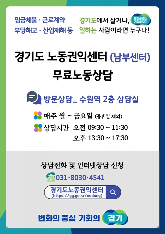 ○ 경기도노동권익센터 남부센터(수원역 2층) 무료 노동법률상담 실시