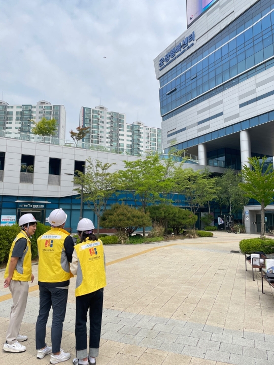 이날 드론 비행 승인을 위한 군부대 관계자를 비롯하여 재난안전팀, 해당 시설물 안전관리자, 드론 전문 자격증을 보유한 시설물 점검자와 합동점검을 실시하였으며 건물 외벽 줄눈, 타일 손상 여부, 강풍에 의한 탈락 위험성 등을 점검하였다.