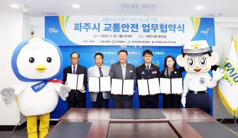 파주시는 22일, 50만 시민의 교통안전 상생방안을 마련하기 위해 파주시의회, 파주경찰서, 파주교육지원청, 대한노인회 파주시지회와 교통안전 업무협약을 체결했다.