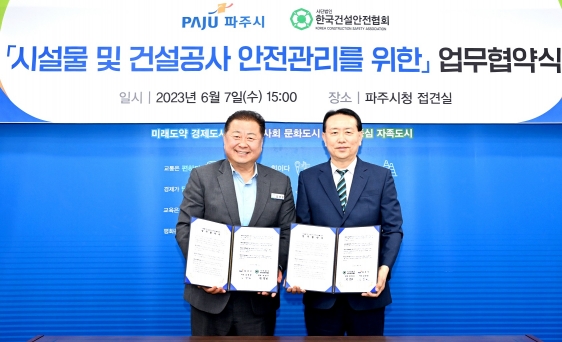 파주시는 7일 시청 접견실에서 (사)한국건설안전협회와 ‘시설물 및 건설공사 안전 관리를 위한 업무협약’을 체결했다.