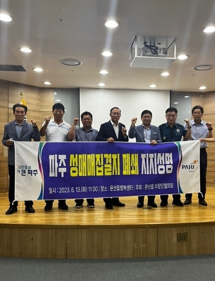 파주시 문산읍 이장단협의회는 지난 13일 파주시에서 추진하고 있는 성매매집결지 정비사업을 적극 지지한다는 의사를 밝혔다.
