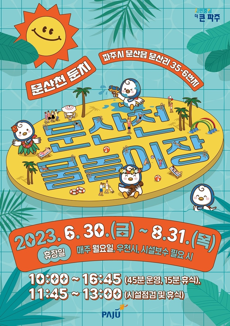 김경일 파주시장은 “문산천 물놀이장은 가족 단위 이용객이 많을 것으로 예상되는 만큼 철저한 수질 및 안전관리를 통해 시민들에게 무더운 여름 더위를 해소할 수 있는 또 하나의 피서지가 될 수 있도록 노력할 것”이라며, “안전사고 없는 물놀이장을 위해 이용자들께서도 안전 및 이용수칙을 준수하고, 안전요원의 지시에 따라주실 것을 당부드린다”라고 전했다.
