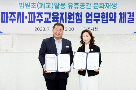 파주시는 6일, 파주교육지원청과 ‘법원초(폐교) 문화창작공간 조성을 위한 업무협약’을 체결했다.