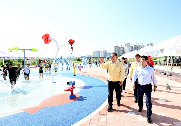이날 김 시장은 전반적인 물놀이장 운영상태를 꼼꼼히 살폈다. 물놀이장 내에 설치된 물놀이형 수경시설 17곳의 운영실태를 점검하고, 편의시설인 음수대, 세족장 등의 시설물 상태와 작동 여부를 점검했다.