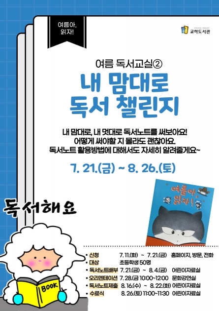 파주시 교하도서관에서는 여름방학을 맞아 여름 독서 교실 프로그램 ‘여름아 읽자!’를 운영한다.